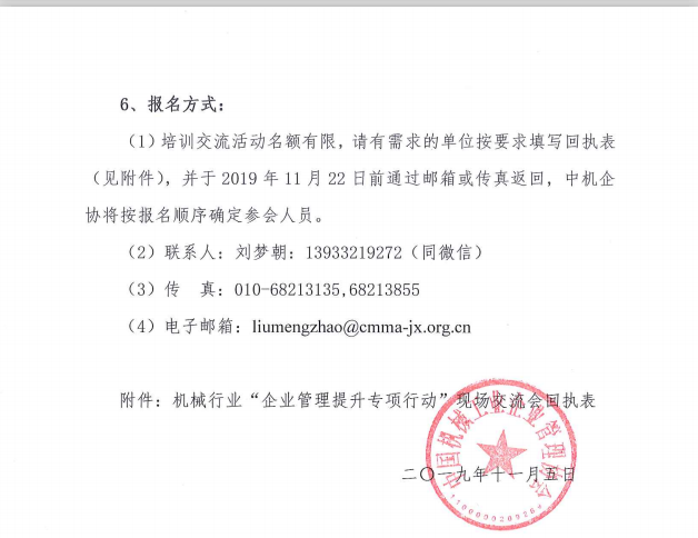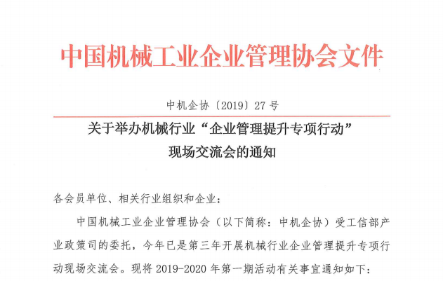 機(jī)械行業(yè)“企業(yè)管理提升專項(xiàng)行動(dòng)”現(xiàn)場交流會(huì)通知--中機(jī)企協(xié)[2019]27號(hào).pdf