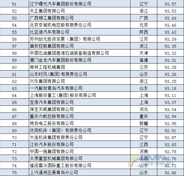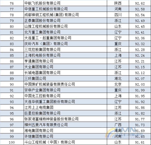 2013年中國(guó)機(jī)械500強(qiáng)排名(1-100)
