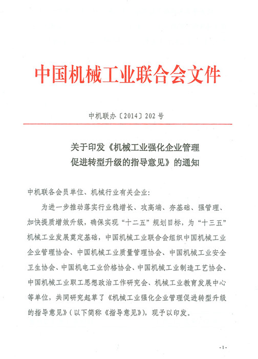 關(guān)于印發(fā)《機(jī)械工業(yè)強(qiáng)化企業(yè)管理促進(jìn)轉(zhuǎn)型升級的指導(dǎo)意見》的通知