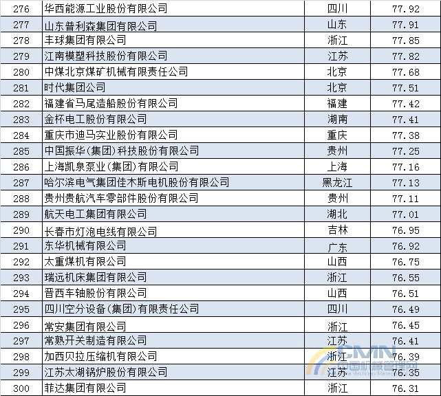 2014年中國(guó)機(jī)械500強(qiáng)排名