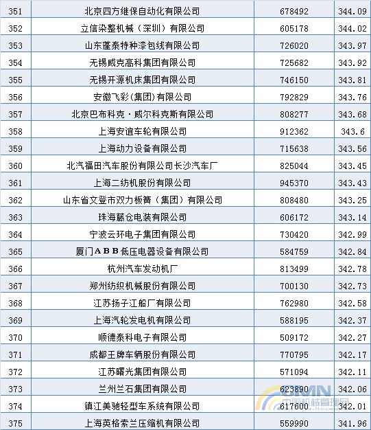 2004年中國(guó)機(jī)械500強(qiáng)排名(301-400)