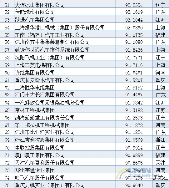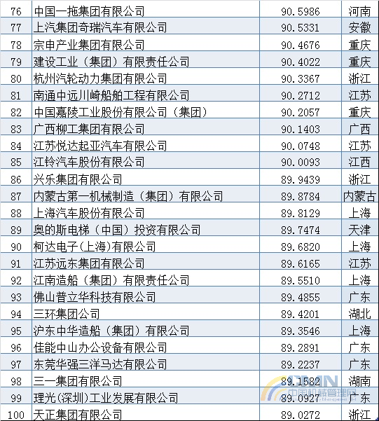 2005年中國(guó)機(jī)械500強(qiáng)排名(1-100)