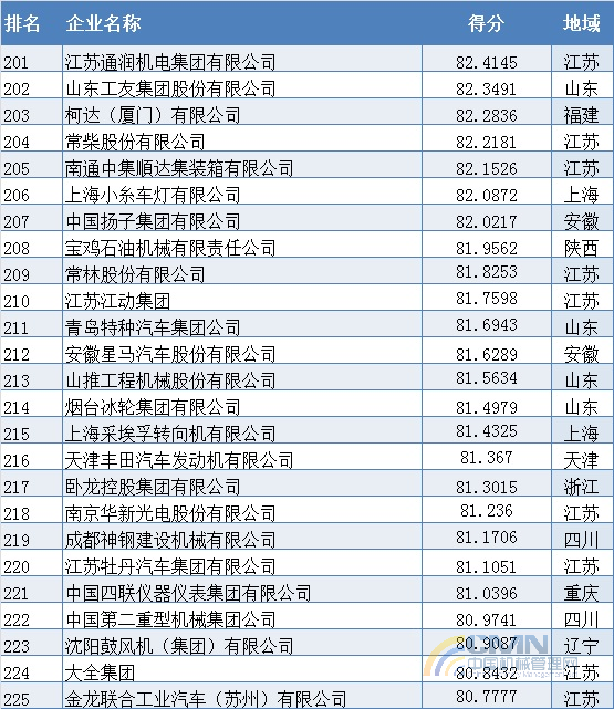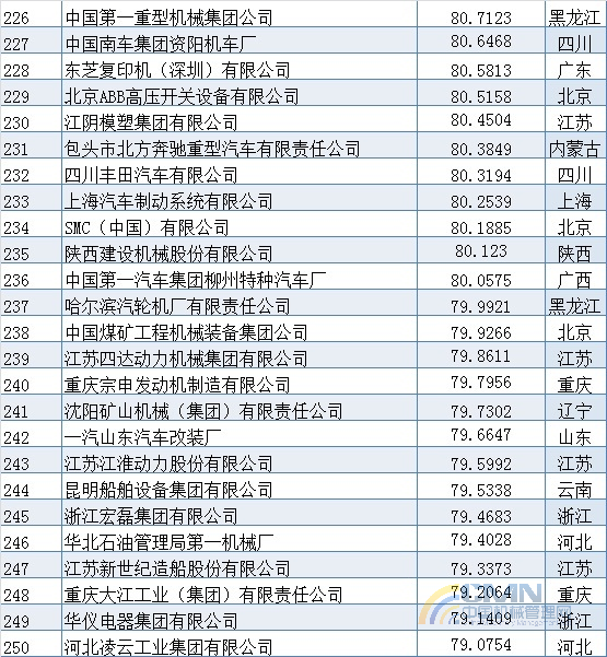 2005年中國(guó)機(jī)械500強(qiáng)排名(201-300)