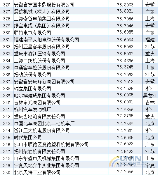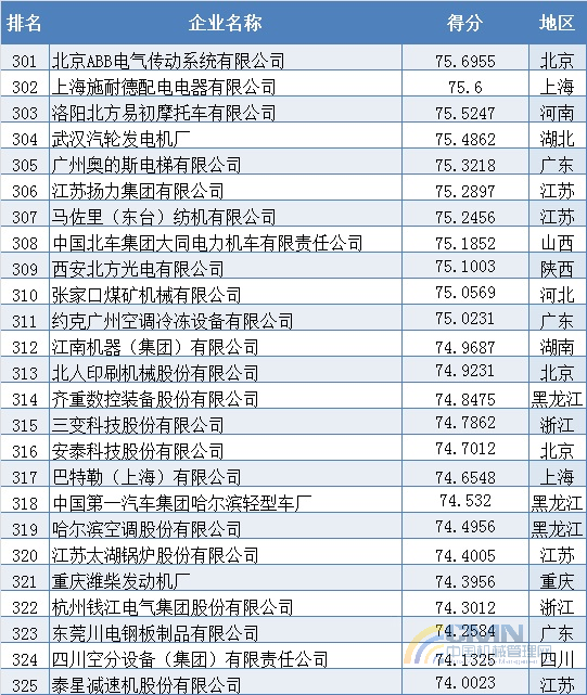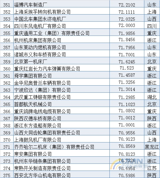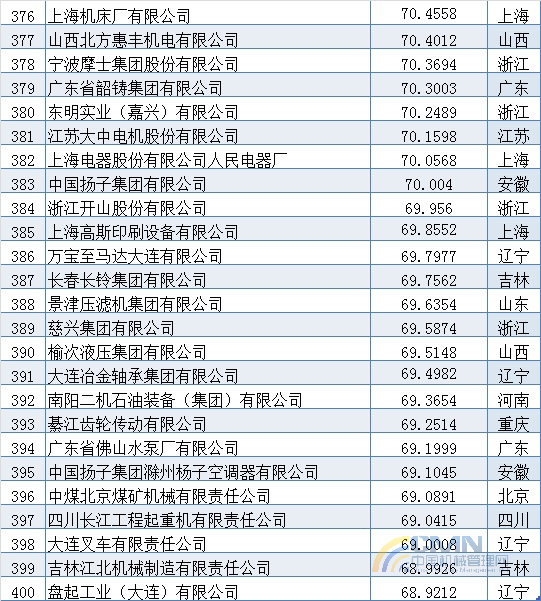 2006年中國(guó)機(jī)械500強(qiáng)排名(301-400)