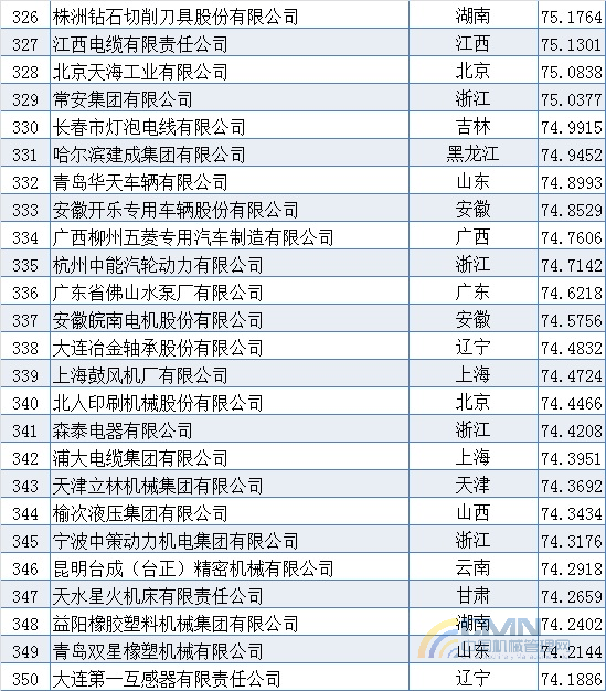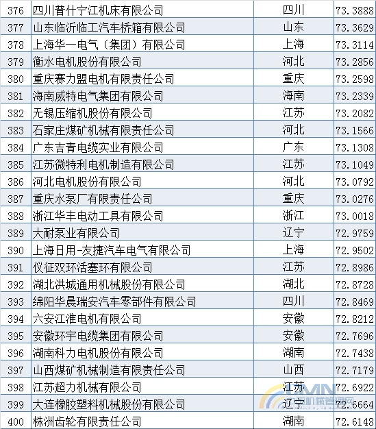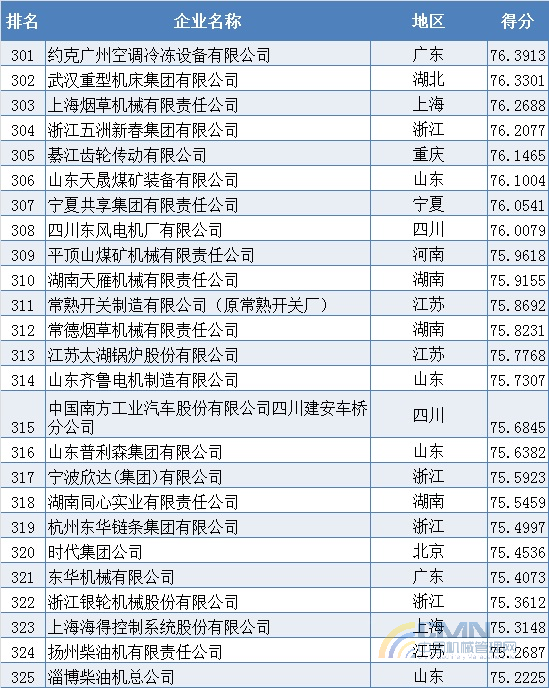 2009年中國機(jī)械500強(qiáng)排名(301-400)