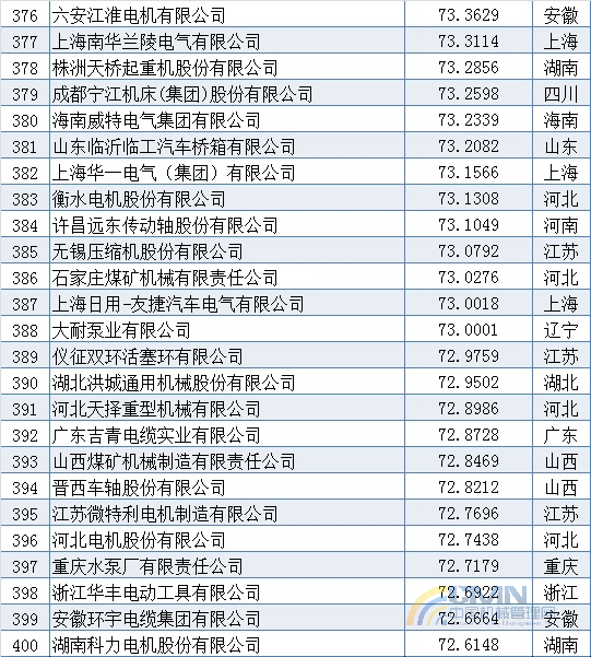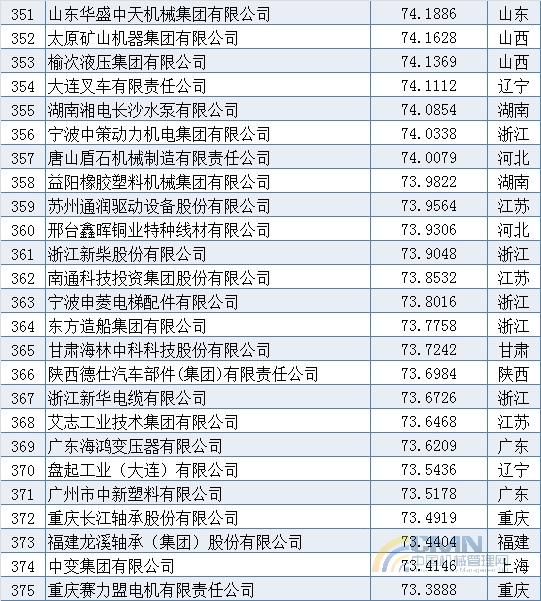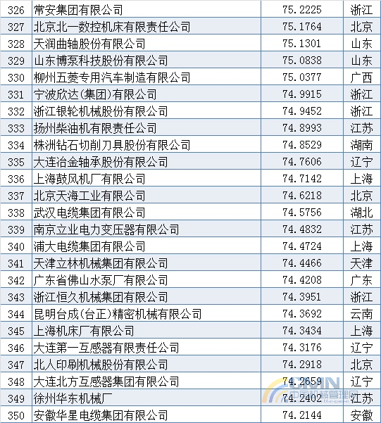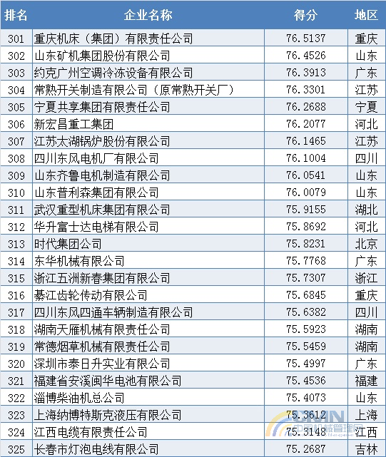2010年中國機(jī)械500強(qiáng)排名(301-400)