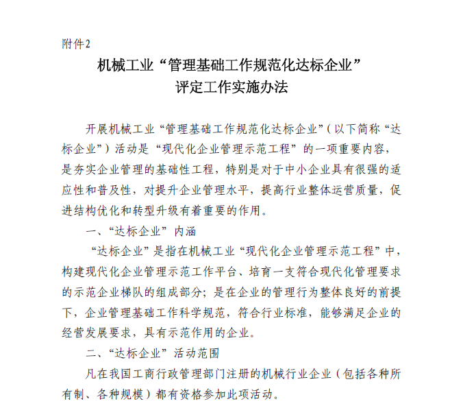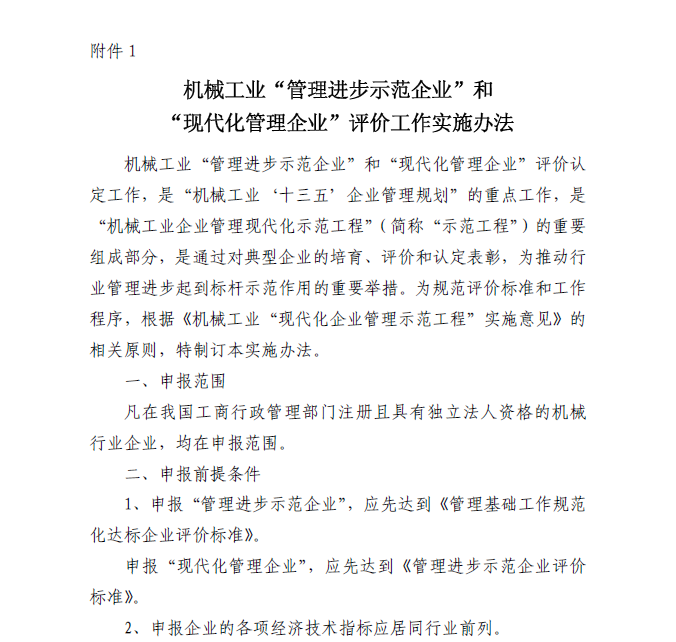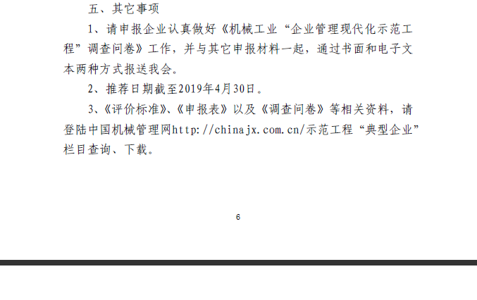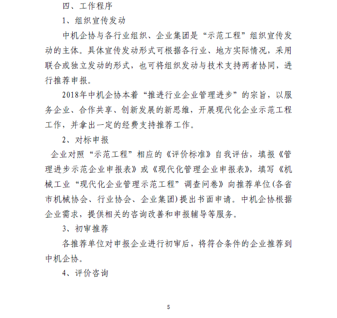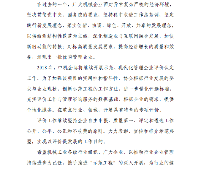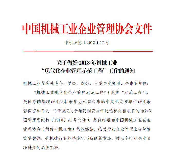 關(guān)于做好2018年機(jī)械工業(yè)“現(xiàn)代化企業(yè)管理示范工程”工作的通知