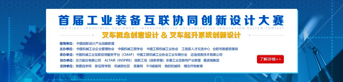 首屆工業(yè)裝備互聯(lián)協(xié)同創(chuàng)新設計大賽(叉車專題賽)是適應形勢,適應發(fā)展,適應需要,應運而生的一屆全新賽事,本屆競賽是與以往多次組織的賽事完全不同的一次大賽,是主辦方通過中國機械工業(yè)互聯(lián)應用服務平臺(CMAP)為本次大賽提供資源平臺,由CMAP邁迪云和設計工具(邁迪設計包、Inspire等)服務整個賽事;是開放的、沒有圍墻場地、沒有固定時點、凸顯設計水平的競賽。