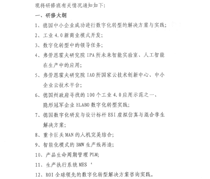 關(guān)于在德國舉辦"中小企業(yè)數(shù)字化轉(zhuǎn)型對標與實踐高端研修班"的通知