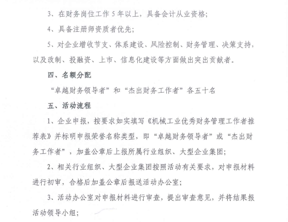 關(guān)于開展“卓越財(cái)務(wù)領(lǐng)導(dǎo)者”與“杰出財(cái)務(wù)工作者”評(píng)選活動(dòng)的通知