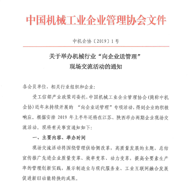 關(guān)于舉辦機械行業(yè)“向企業(yè)送管理”現(xiàn)場交流活動的通知