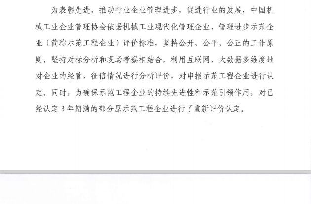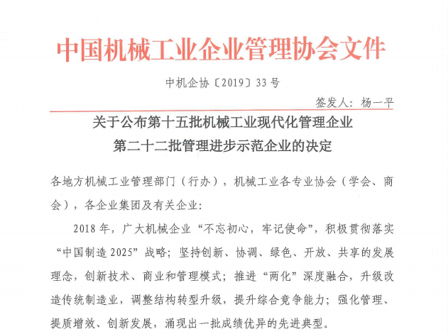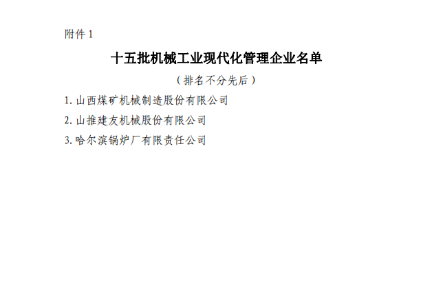 關于公布第15批機械工業(yè)現(xiàn)代化管理企業(yè)、第22批管理進步示范企業(yè)的決定