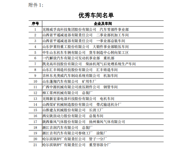 關(guān)于表彰2018年機(jī)械工業(yè)優(yōu)秀車間、優(yōu)秀車間主任的決定