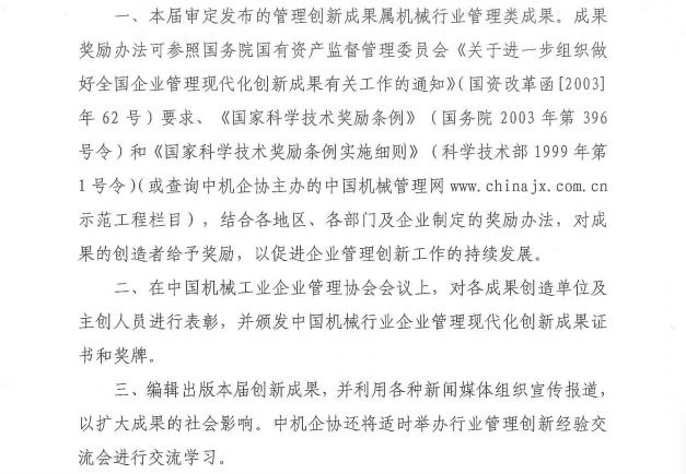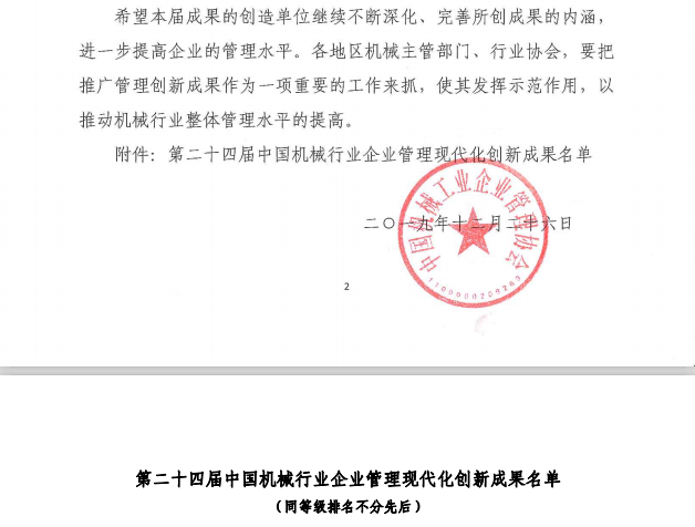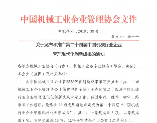 關(guān)于發(fā)布和推廣第二十四屆中國機(jī)械行業(yè)企業(yè)管理現(xiàn)代化創(chuàng)新成果的通知