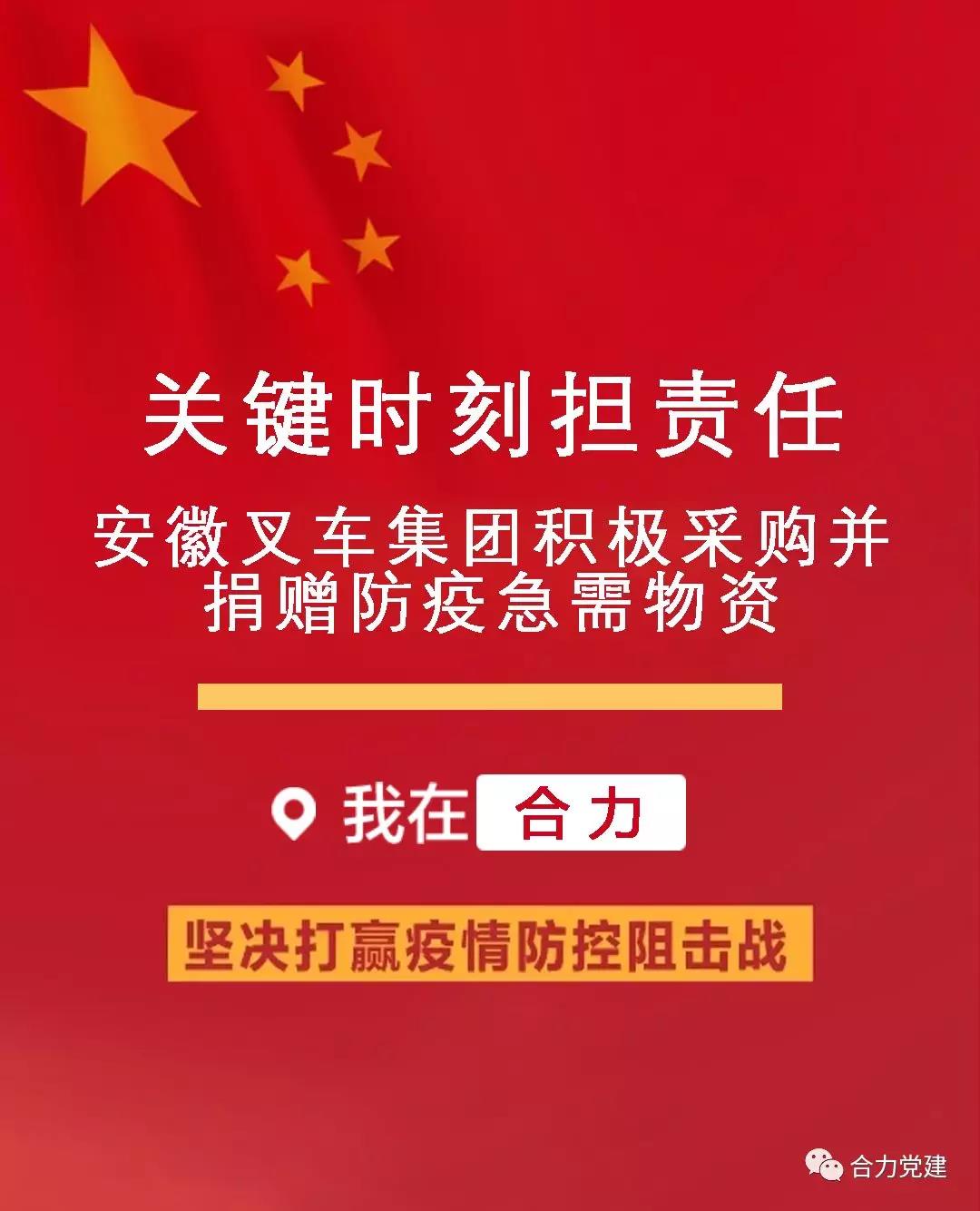 服務(wù)大局,不講條件!防控需要,合力支持!安徽叉車集團深入學(xué)習(xí)習(xí)近平總書記關(guān)于防控新型冠狀病毒感染的肺炎疫情重要指示精神,積極落實安徽省委省政府及省國資委決策部署,在做好疫情防控各項工作的基礎(chǔ)上,積極調(diào)動全球資源,第一時間向安徽省疫情防控應(yīng)急指揮部捐贈了護目鏡、防護帽、隔離衣和防護服等防疫物資共計9400件,全力做好新型冠狀病毒感染的肺炎疫情防控及應(yīng)對工作,受到了安徽省疫情防控應(yīng)急指揮部的表彰。